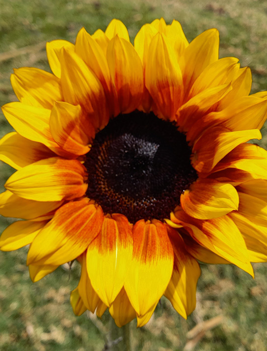 A true statement sunflower, defined by its fiery two-tone petals, a bold blend of yellow with warm red to bronze tones that reads instantly premium in mixed assortments.