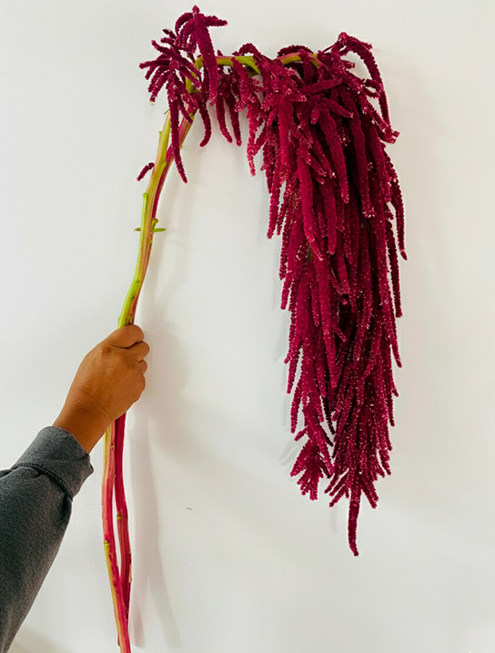 Amaranthus is a premium texture stem that reads luxury at first glance. Its name is rooted in Greek amarantos, often interpreted as unfading, a fitting reference to its enduring visual presence in fresh designs and preserved décor. Grown and harvested in Ecuador, at the foot of Andean volcanoes and mountains, Amaranthus benefits from cool high-altitude nights and bright equatorial light, conditions that help preserve its natural turgor and keep those long tassels looking crisp, full, and well-defined through the cold chain. The same environment supports strong stem development and rich color expression, so importers receive consistent, high-impact texture that holds its shape and presence from arrival to final use.