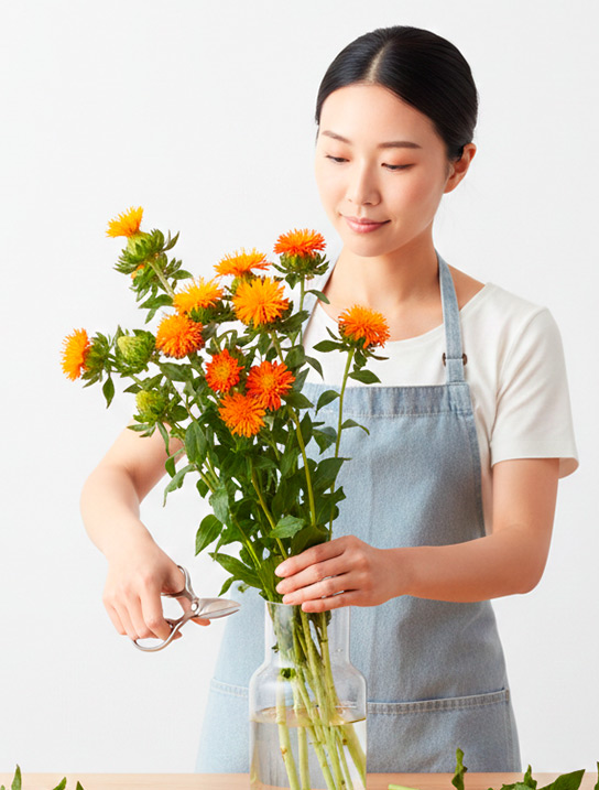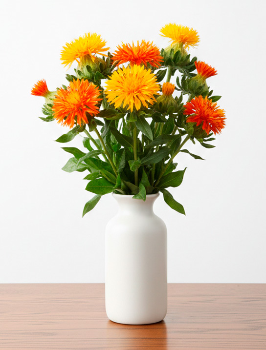Safflower delivers bright, confident orange spray texture, excellent for seasonal warmth, modern color blocking, and high-impact mixed programs. Select cut types are known for sturdy stems and long vase life, making them a practical statement stem for B2B assortments. In the Ecuadorian Andes, intense light supports clear, saturated color development, keeping the orange tone vivid and market-forward through distribution.