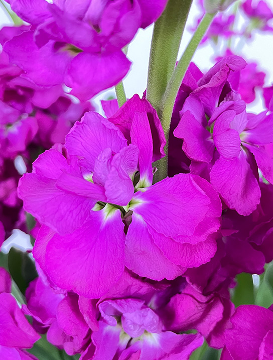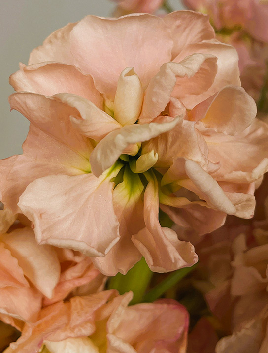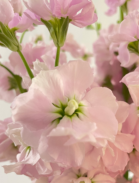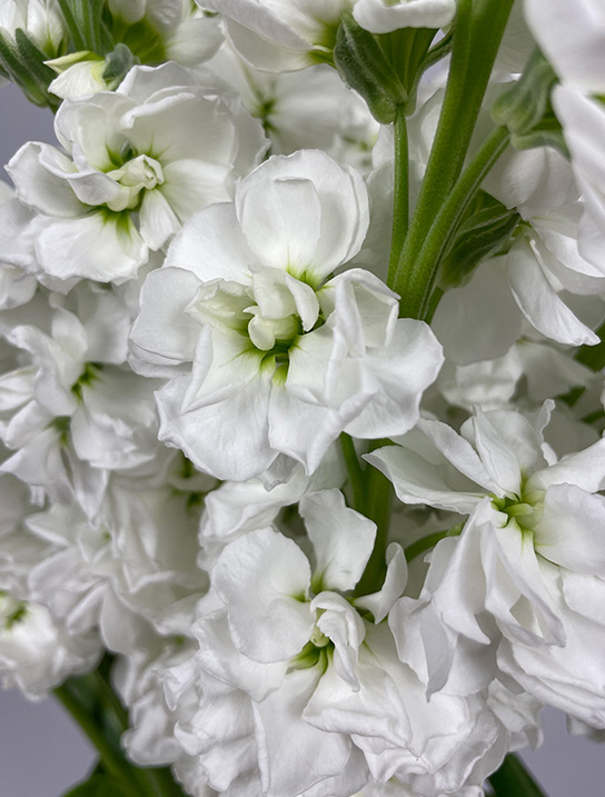 A naturally branched Stock with multiple flowering side stems and refined florets that create a soft, airy feel. It adds texture, movement, and generous floral coverage on a single stem, giving arrangements a graceful, garden-inspired finish.